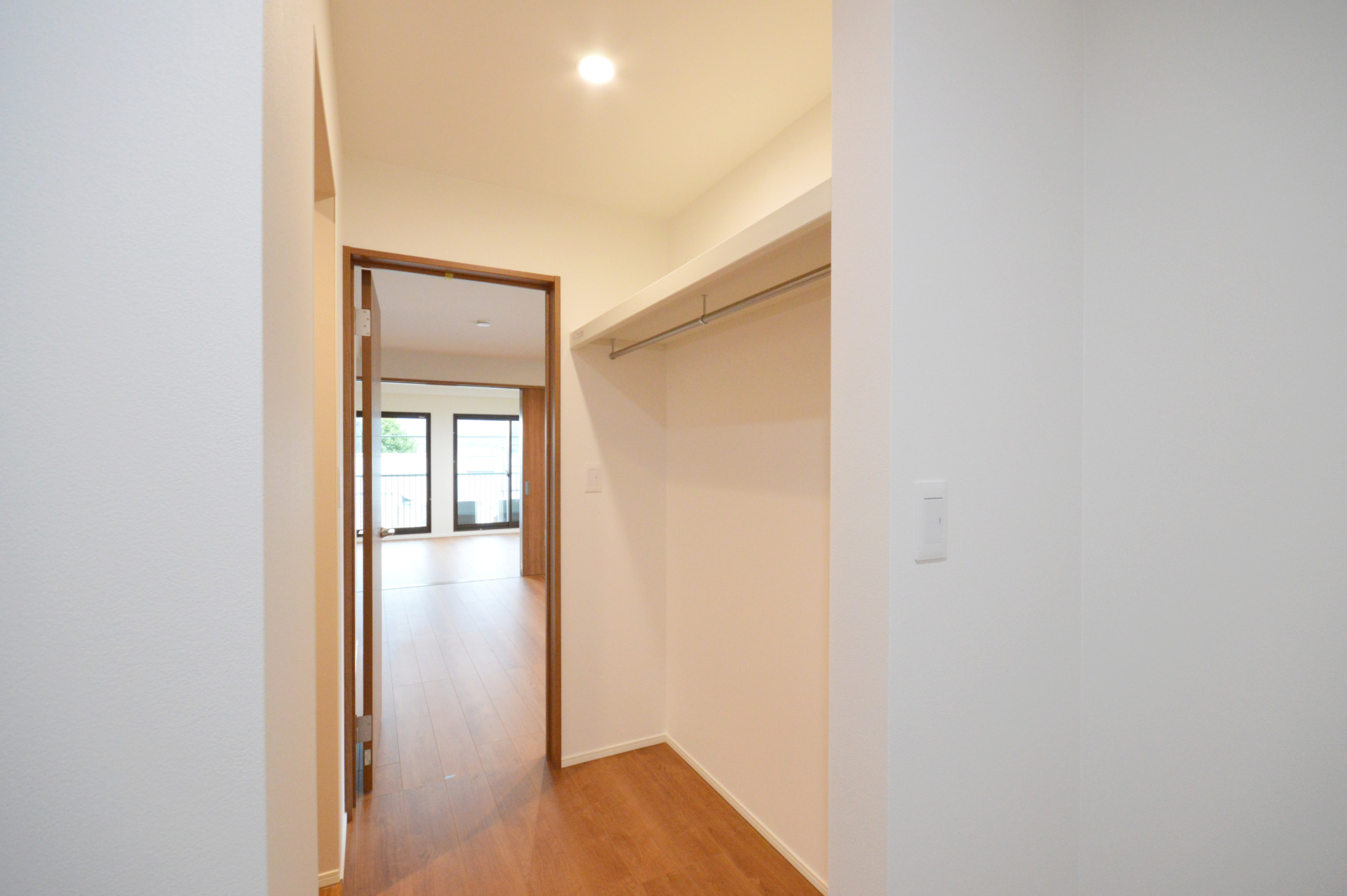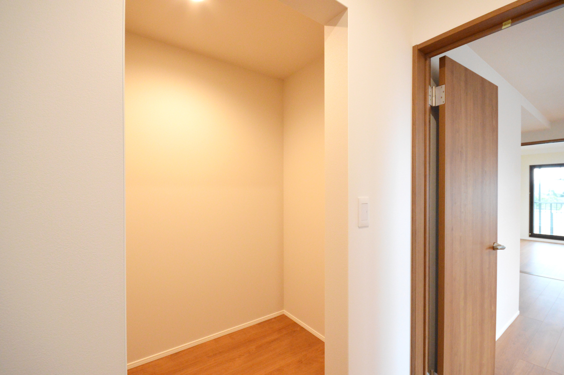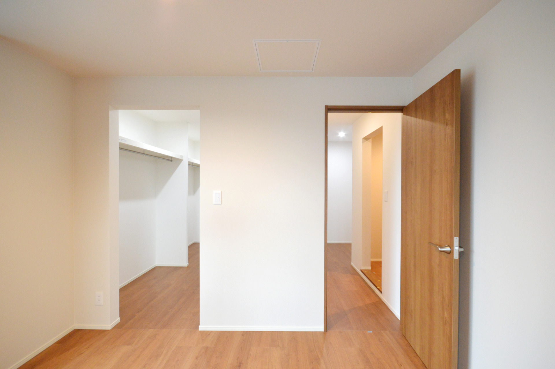 寝室の隣には、ウォークインクローゼットと、納戸を設けました。愛犬のスペースもつくりました。