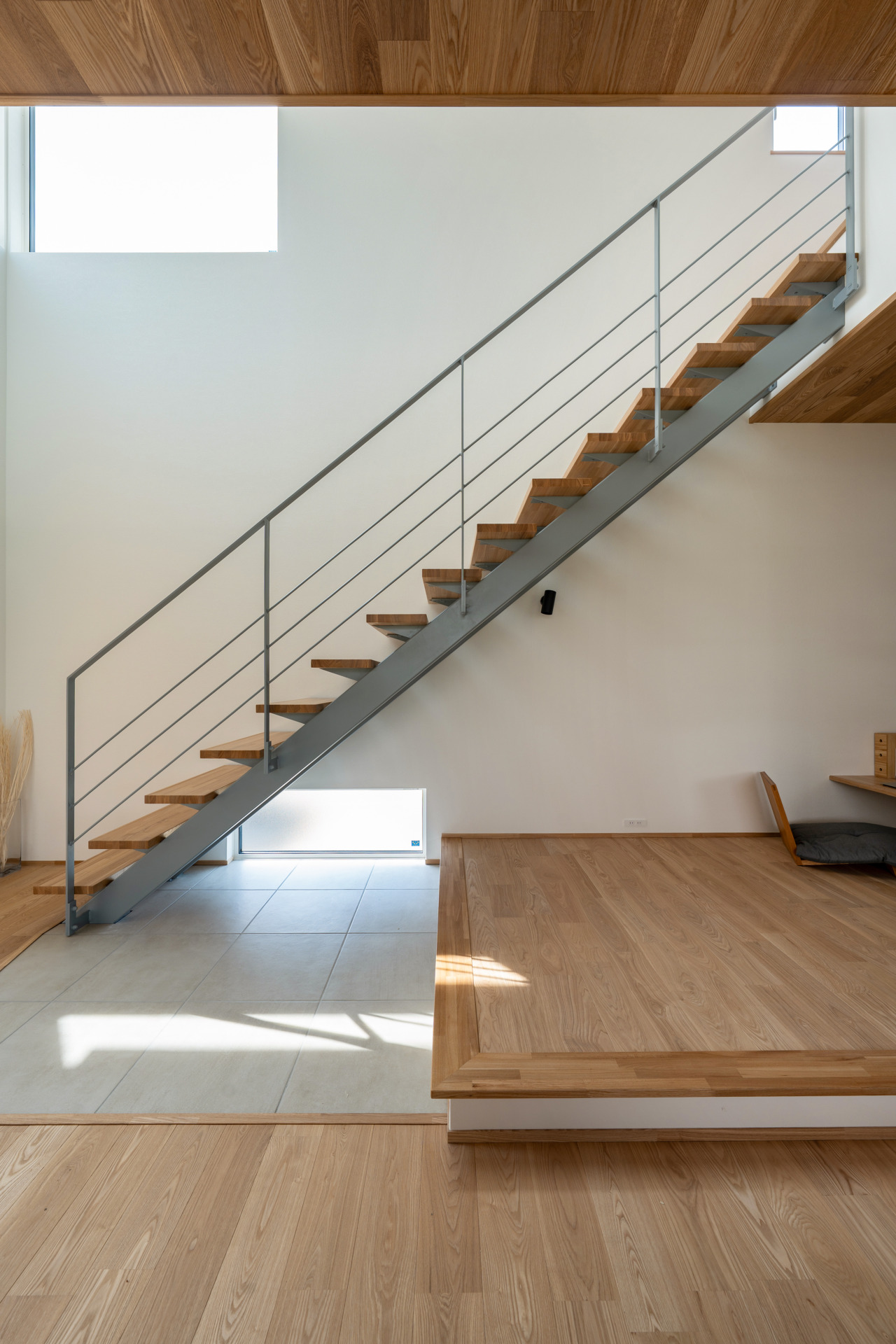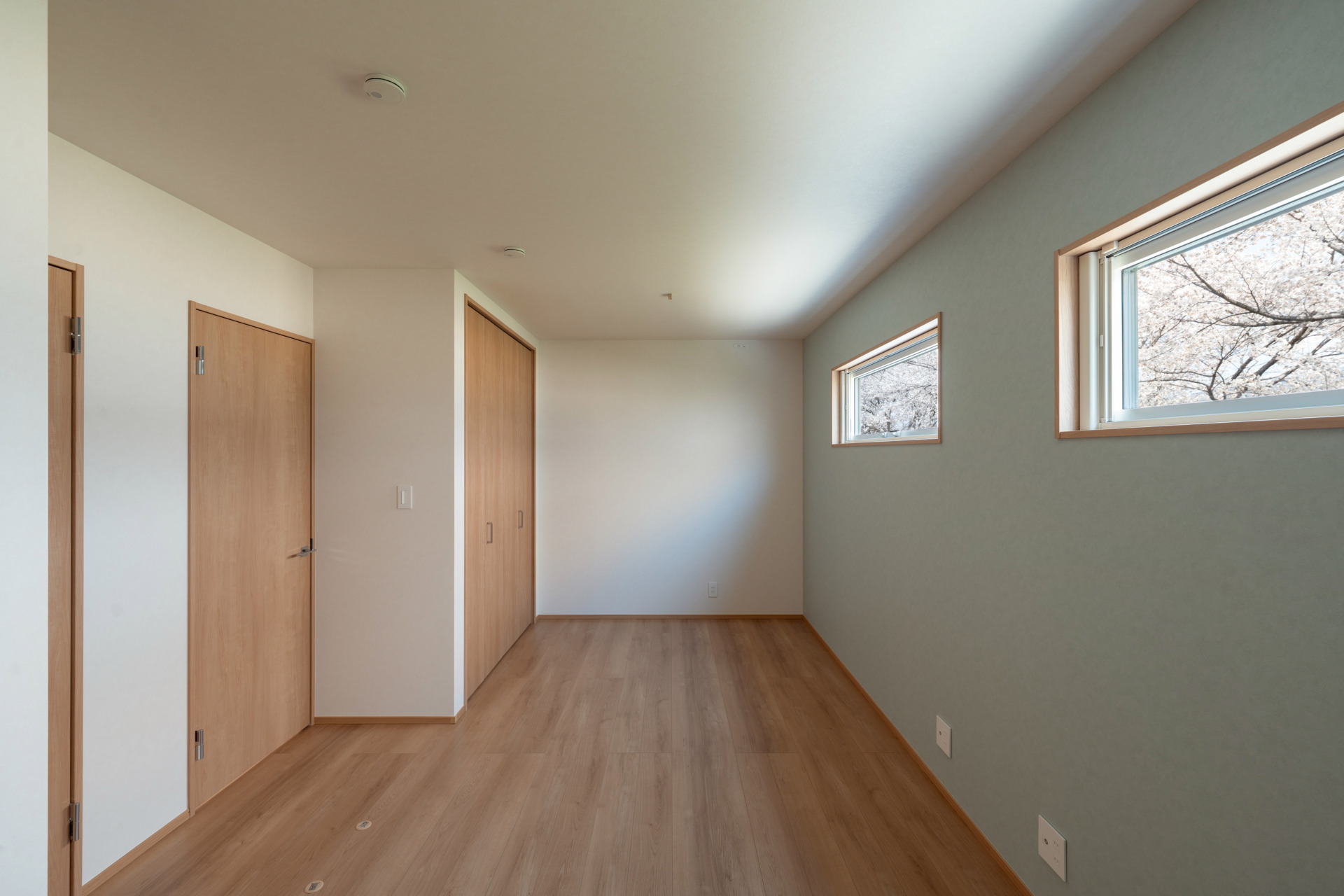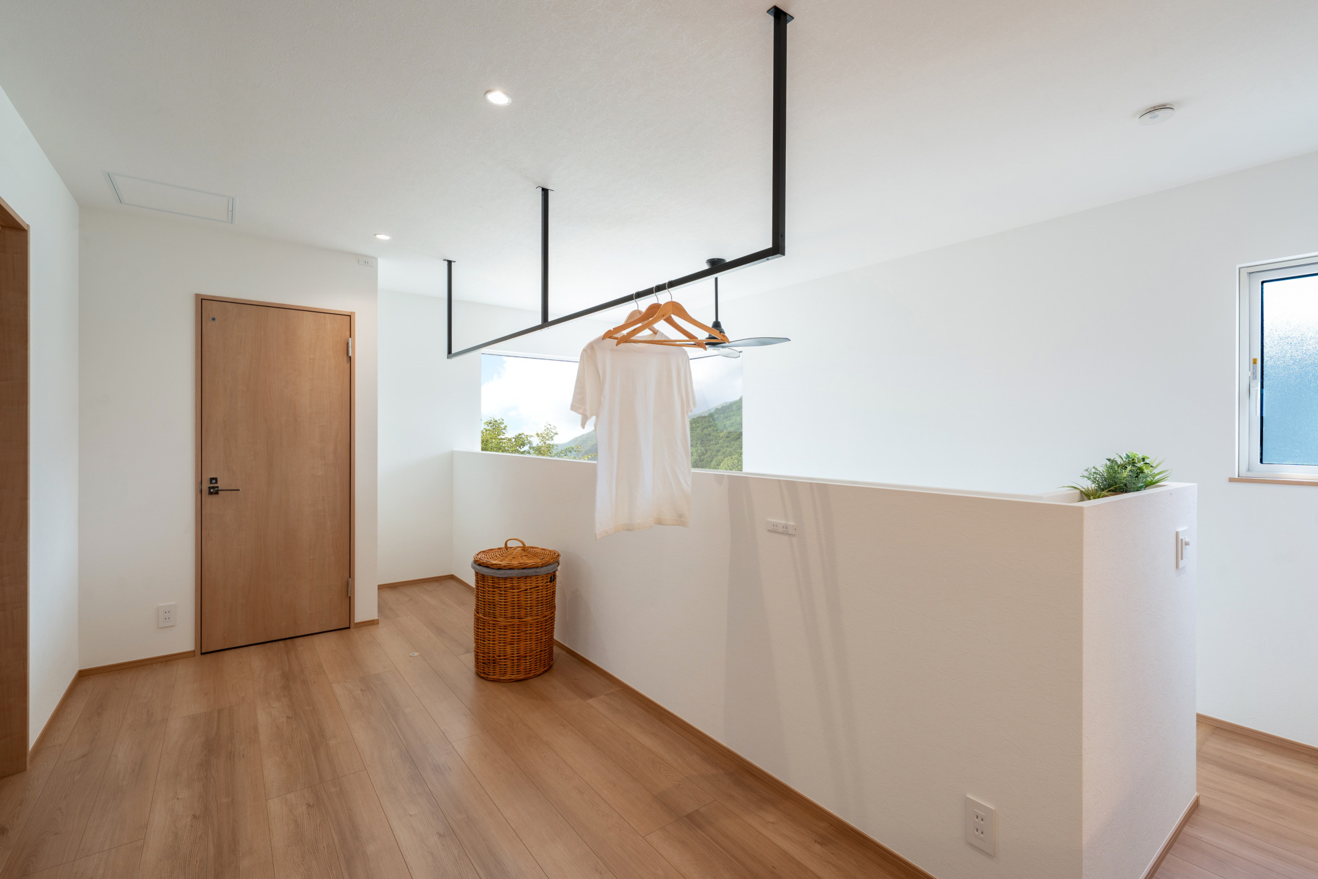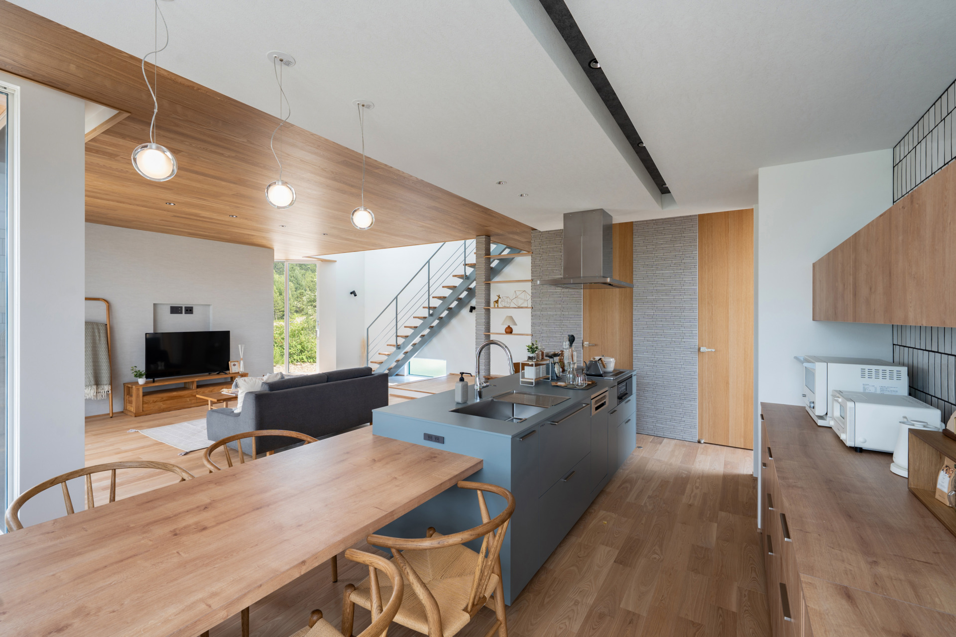 吹き抜けのあるLDK、天井までの大開口窓など、空間に余白を残す開放的で明るい住まい。